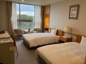 (写真:鳥海温泉「遊楽里」で宿泊した部屋。「お部屋お任せ」で予約。1人旅なのにツインを用意してくれました)