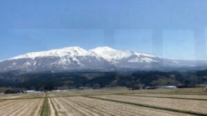 (写真:晴れていた時間、JRの車窓から見えた!「鳥海山」)