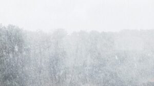 強風とともに白い雪が乱舞する風景。