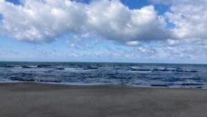 風もなく、誰もいない冬の海水浴場をゆっくり歩くことができました。